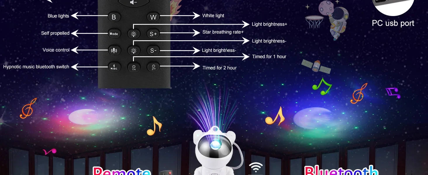 اسم المنتج: مصباح عرض النجوم بلوتوث رائد الفضاء